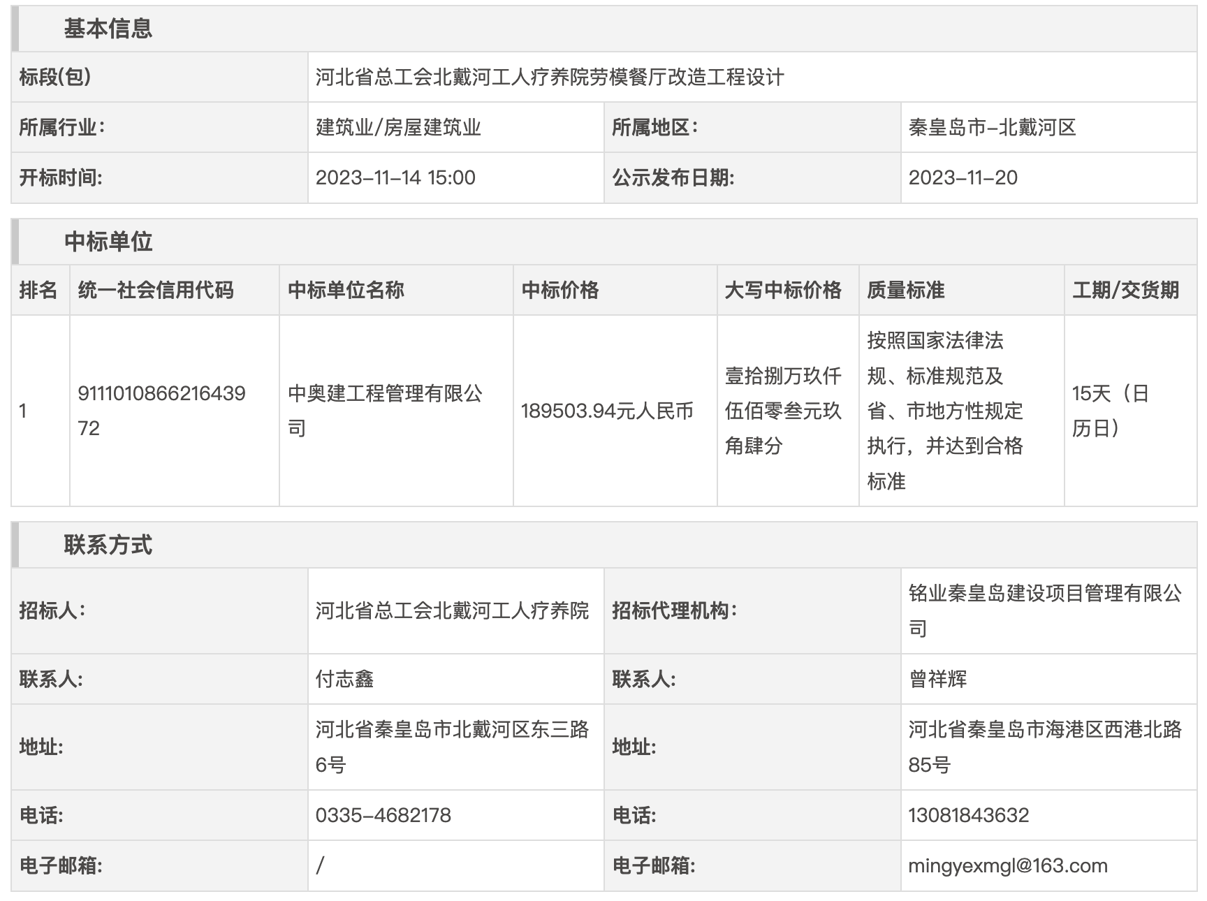 河北省总工会北戴河工人疗养院劳模餐厅改造工程设计中标结果公示