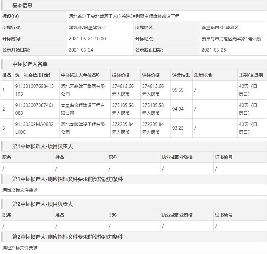 河北省总工会北戴河工人疗养院3#别墅专项维修改造工程候选人公示
